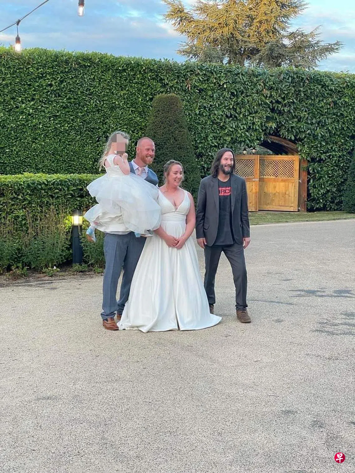 以亲和形象闻名的Keanu Reeves毫无架子一口就答应,隔天真的出现在这对新人的婚礼上。据这对新人透露,Keanu Reeves待了十几分钟,非常友善与他们及宾客寒暄、互动,更大方接受合照要求。有宾客向他敬酒,但是他以刚完成长途飞行而婉拒。