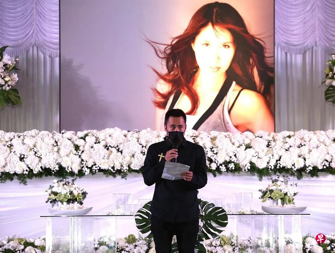 (台北讯)台湾资深艺人余天、李亚萍的39岁二女儿余苑绮8月21日因癌症病逝,昨早(29日)举行告别式,由小一岁的弟弟余祥铨致词。