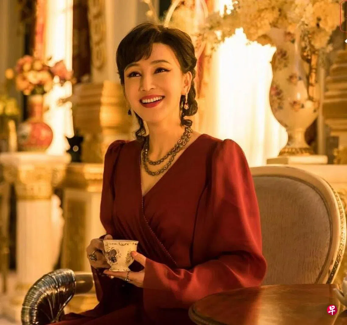 在《女》剧中,娜姐的造型雍容华贵,服饰具大量中国元素,像剧中的金色刺绣礼服,纯手工,绣了凤头、龙鳞还有卷草纹、祥云纹,“女神”服饰10几套,她非常喜欢,《女》也富含新加坡人物风味,如红头巾的出现。