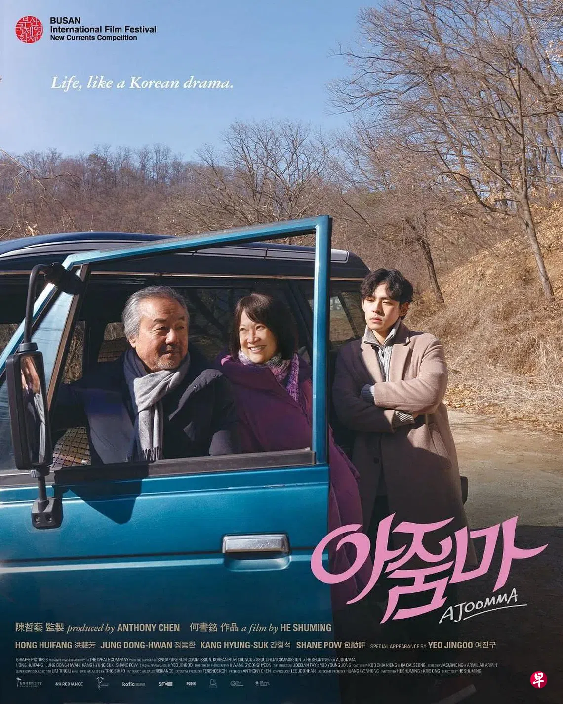 由陈哲艺监制 ,何书铭导演的首部电影 《花路阿朱妈》由洪慧芳、郑东焕、姜亨锡、呂珍九和包勋评主演,将在27届韩国釜山电影节首映,于新浪潮单元竞赛。电影10月27日新加坡院线上映。
