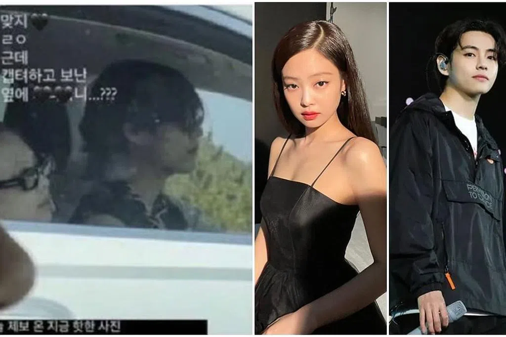 (韩国讯)BTS成员V亲吻BLACKPINK成员Jennie额头的照片曝光。