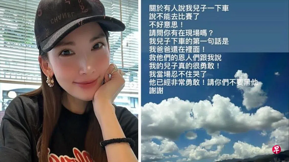 (台北讯)林志颖载儿子时发生自撞车祸一个多月后仍引发热议,有网民指责儿子车祸后第一句话是“不能去比赛”而非关心爸爸生死。林志颖妻子陈若仪还原现场说:“儿子下车第一句话是我爸爸还在里面!”