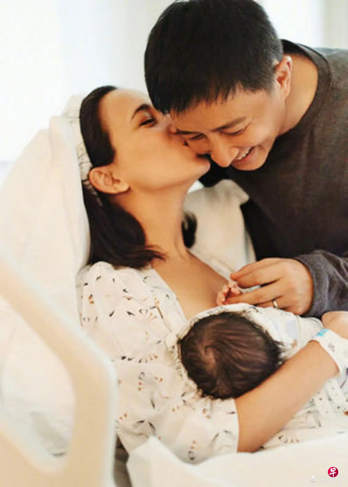(综合讯)中国男星韩庚今年5月宣布妻子怀孕,昨天(9日)产下一女,夫妻俩各自在微博晒出一家三口合照,写下“你好,我们的宝贝”。照片中,韩庚露出灿笑牵着女儿小手,妻子则亲吻他的脸颊,喜悦满溢。