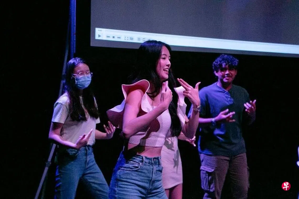 阿姐郑惠玉星期二(9月20日)晚上和田铭耀、黄思恬以及郑颖到访淡马锡理工学院(Temasek Polytechnic),和100名学院生互动。