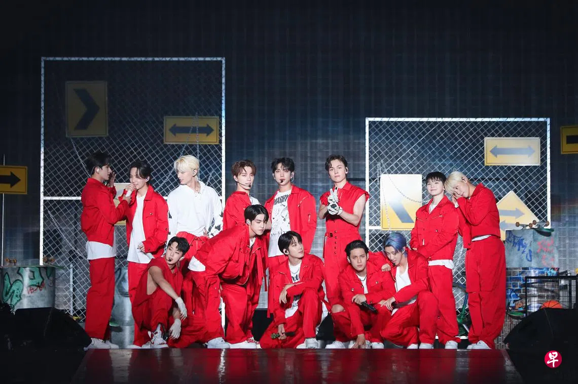 韩国人气男团SEVENTEEN星期四(10月14日)晚上来新举办“SEVENTEEN’s WORLD TOUR [BE THE SUN] – SINGAPORE”演唱会,1万名“CARAT”(粉丝名称)共襄盛举,齐聚新加坡室内体育馆一睹这13名成员的魅力。