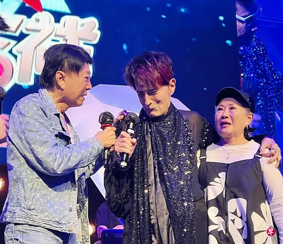 台湾“大盗歌王”林冲前天下午在本地教会单位举办的活动上演出,金银姬(金姐)与老公李韦才惊喜现身,老友三人久别重逢,泪洒舞台。金姐接受《联合早报》访问时说,当年邵氏来新拍片,当业余演员的老公邂逅林冲,两人关系不错。她感慨地说:“他们认识的时候20多岁,青春气盛,一晃眼已是老头子了,身子都不如当年了。”