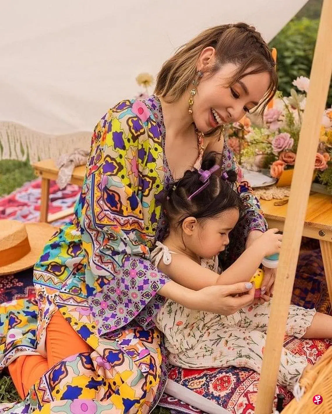 ——无线女星谭凯琪(左图)在IG分享跟两岁女儿合照。