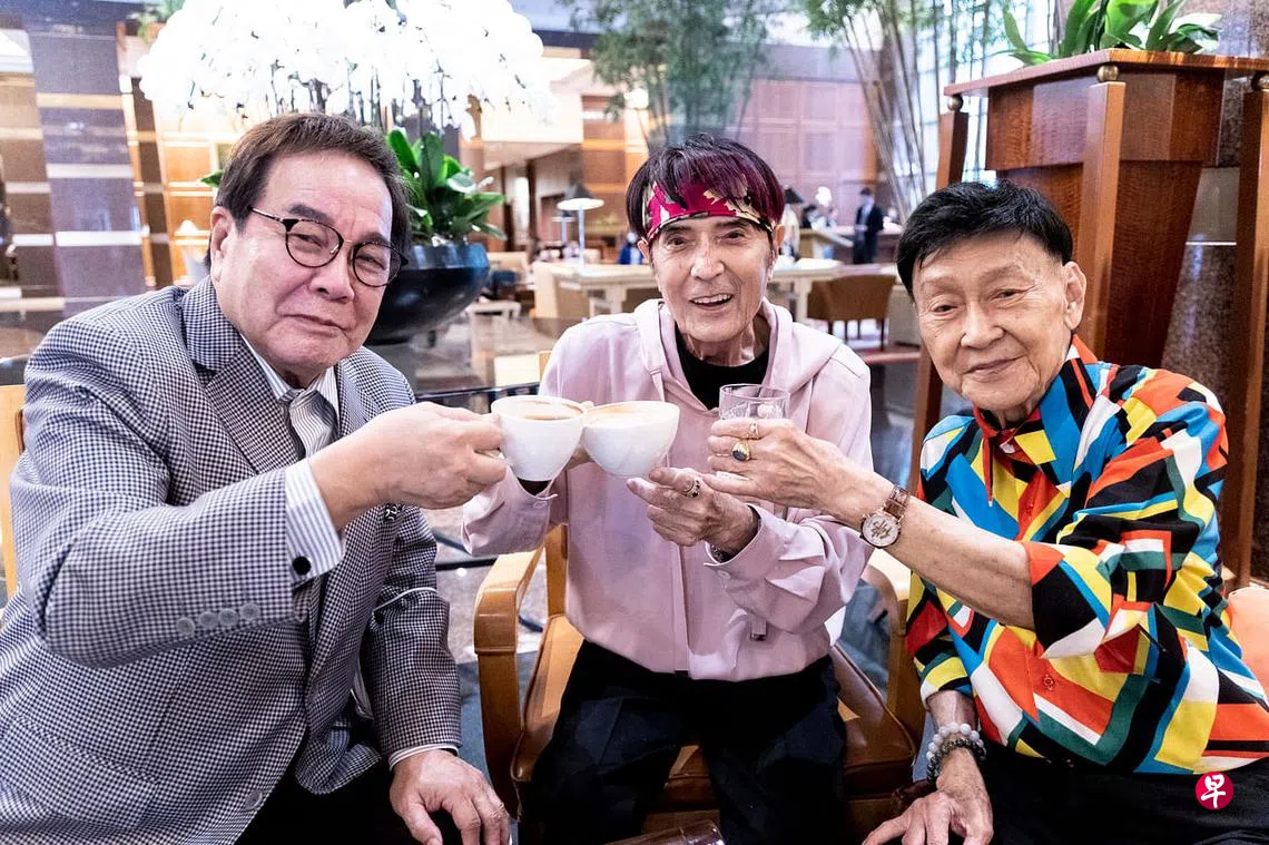 说到别具意义的“老友会”,zaobao.sg记者得知林冲和两位本地资深歌星秦淮、黄清元都有交情,于是趁三人有空,撮合了另一场“久别重逢”。88岁的林冲,和84岁的秦淮、78岁的黄清元,就在他下榻的酒店喝下午茶,展开刚刚好“250岁”的聚会。秦淮好客,说林冲远道而来,“我们带他去吃想吃的东西。”不过林冲怕累婉拒了,他觉得“最重要就是见面叙旧,更胜吃饭。”