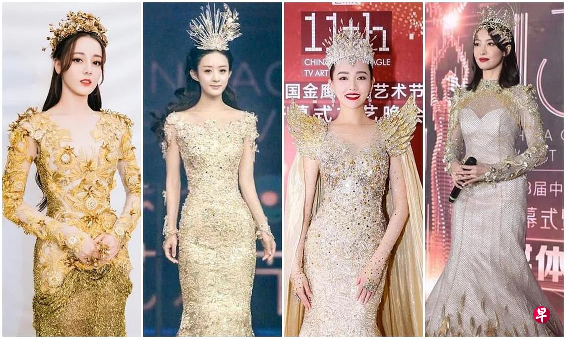金鹰奖组委会在找女神,而刘亦菲正是摆在面前现成的天仙,就这样,她成了金鹰史上的第一位金鹰女神。当年刘亦菲戴着一身真钻配饰,穿着金光闪闪、量身定制的华服在金鹰节开幕式翩然起舞时,可以说是惊艳了众人,金鹰女神的称号也一炮打响。金色礼服,流光溢彩的配饰也成了后来每一届金鹰女神的传统扮相。
