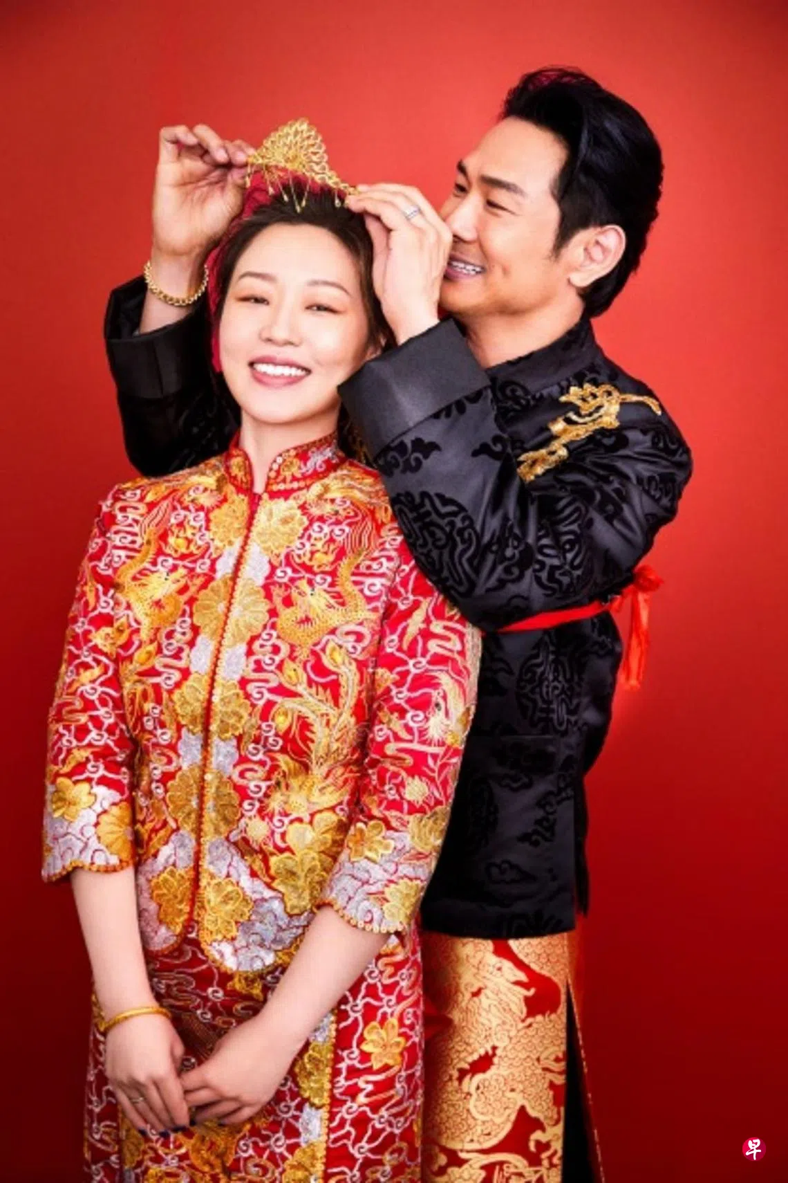 第二波礼物是为太太制造结婚的仪式感。他分享两人的中式裙褂婚照,“当年觉得穿中式结婚感觉好像在拍戏一样,所以没穿有点小遗憾,但原来中式真的有说不出的喜庆感觉。”