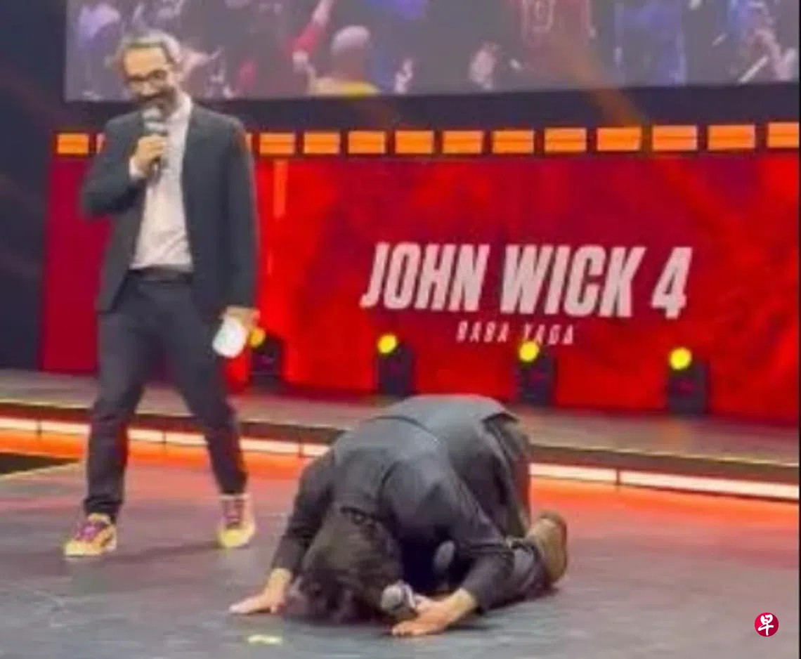 (综合讯)好莱坞影星Keanu Reeves(奇洛李维斯)近日为新片《捍卫任务4》(John Wick: Chapter 4)跑宣传,期间在巴西的一场活动中突然屈膝跪地,并向影迷磕三次头,令全场观众感到惊讶,并热情欢呼回应。