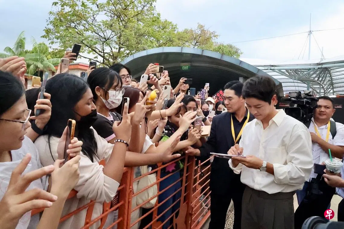 宋仲基受Viu的邀请来新为《财阀家》宣传,星期三(12月7日)在圣淘沙名胜世界举行户外记者会,除了新加坡,还有香港、泰国、菲律宾、马来西亚和印度尼西亚的媒体。现场有大约200个粉丝围观,欧巴非常体贴,记者会结束后立即走向站在后方的粉丝,与他们握手打招呼,引起粉丝尖叫连连。
