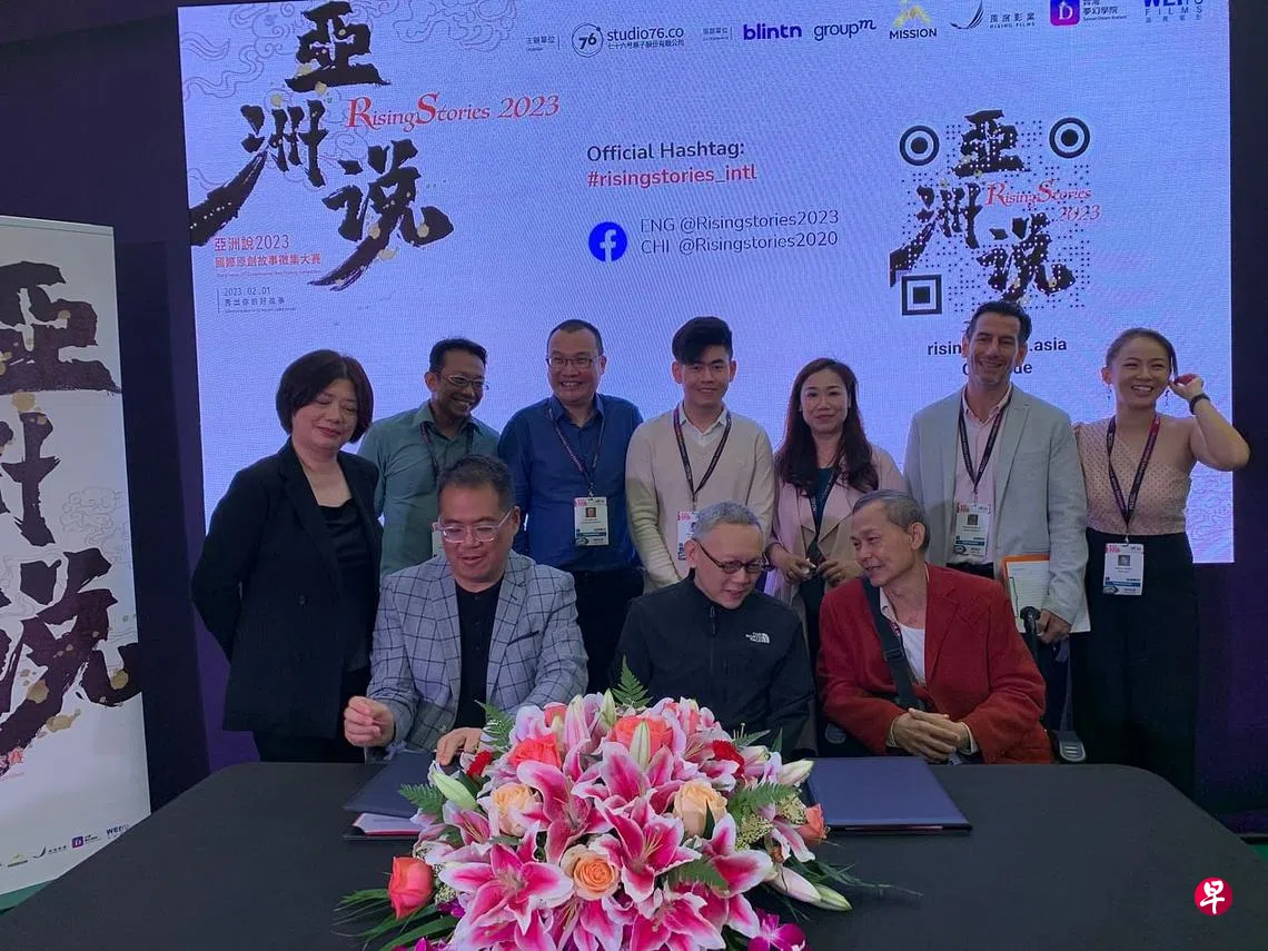 本地导演李天仁领军的沩尧电影(Weiyu Films)与台湾的七十六号原子昨天下午(12月7日)于新加坡亚洲电视论坛及内容交易市场举行签约仪式,宣布合办“2023亚洲说国际原创故事征集大赛”(2023 Rising Stories Story Pitching Competition,简称“亚洲说”),曾与李天仁合作5频道英语剧“128 Circle”的本地演员段伟明到场祝贺。