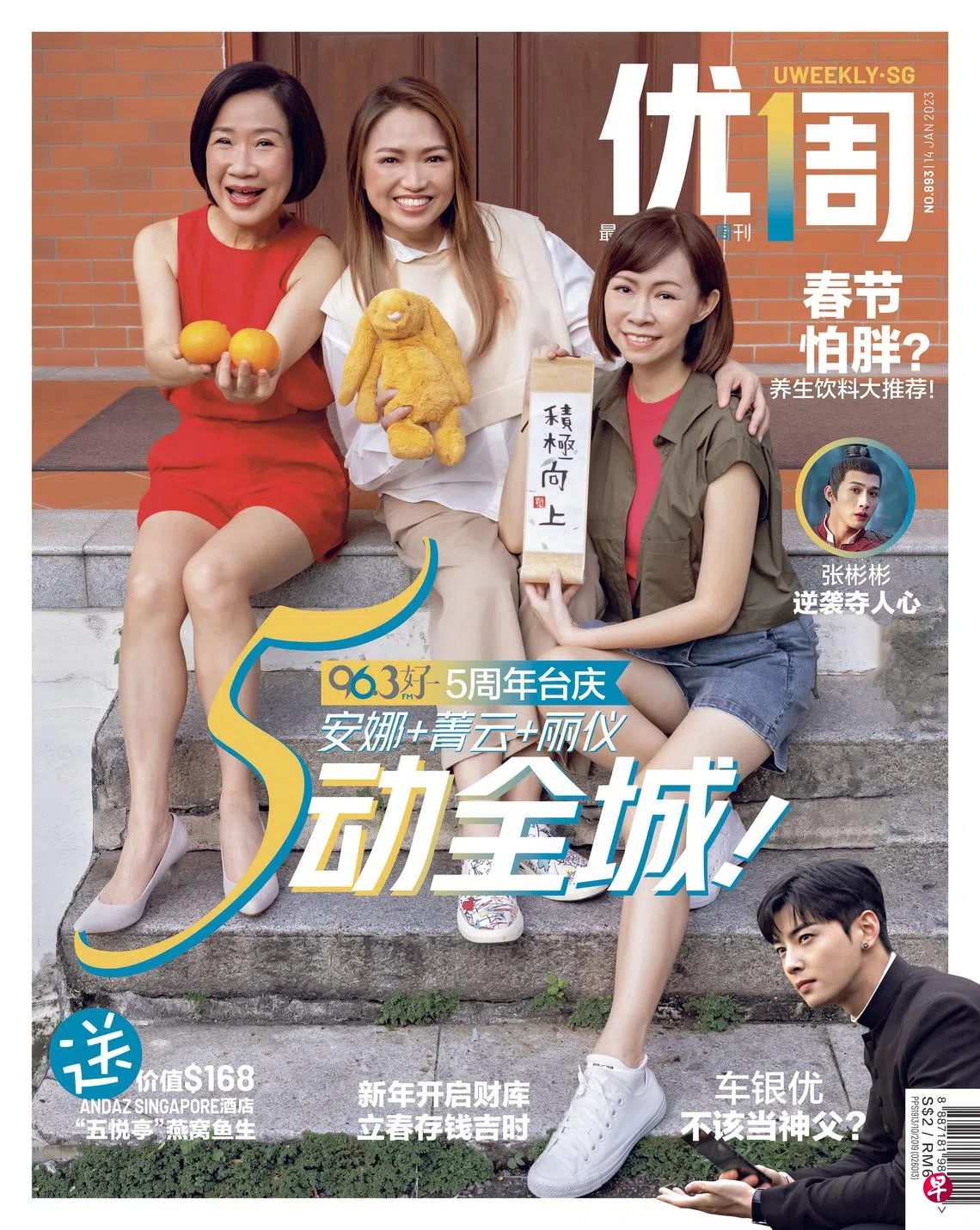 (本地讯)893期《优1周》的封面人物是刚在1月8日庆祝5岁电台生日的96.3好FM三名女将安娜、菁云、丽仪,以及全体DJs们!回顾2022年、展望2023年、庆祝台庆之余,农历新年将至,DJ们也不忘凑热闹谈谈“新年经”!今年96.3好FM的台庆口号是“5动全城”,5周年撼动全城,希望96.3好FM广播继续响彻新加坡每个角落。