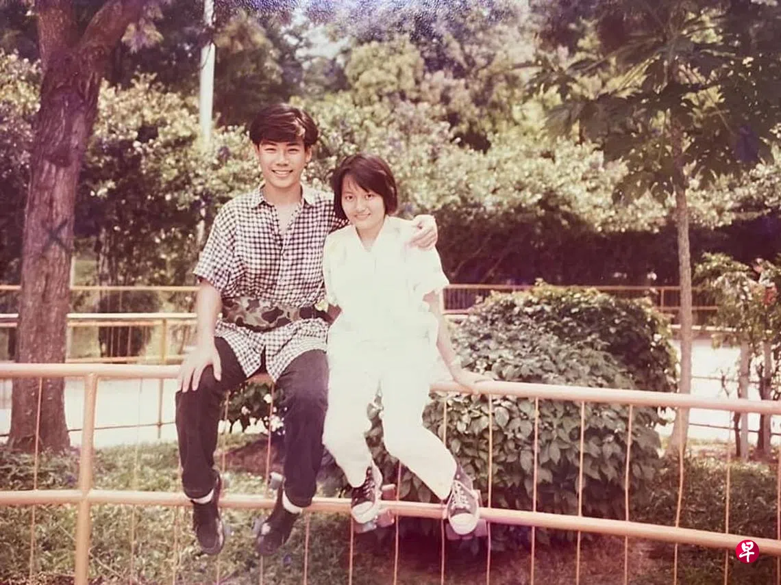 电台UFM100.3 DJ叶丽梅前几天在家大扫除以迎接农历新年,收拾整理时搜到一张早期跟歌手巫启贤的合影。图片中巫启贤穿着短袖格子衬衫,佩戴着迷彩腰包,而叶丽梅一身全白衬衫长裤,两人坐在栏杆上合照,青春无敌;巫启贤还搂着叶丽梅的肩膀,微笑望着镜头,一旁的叶丽梅看上去则有些腼腆。
