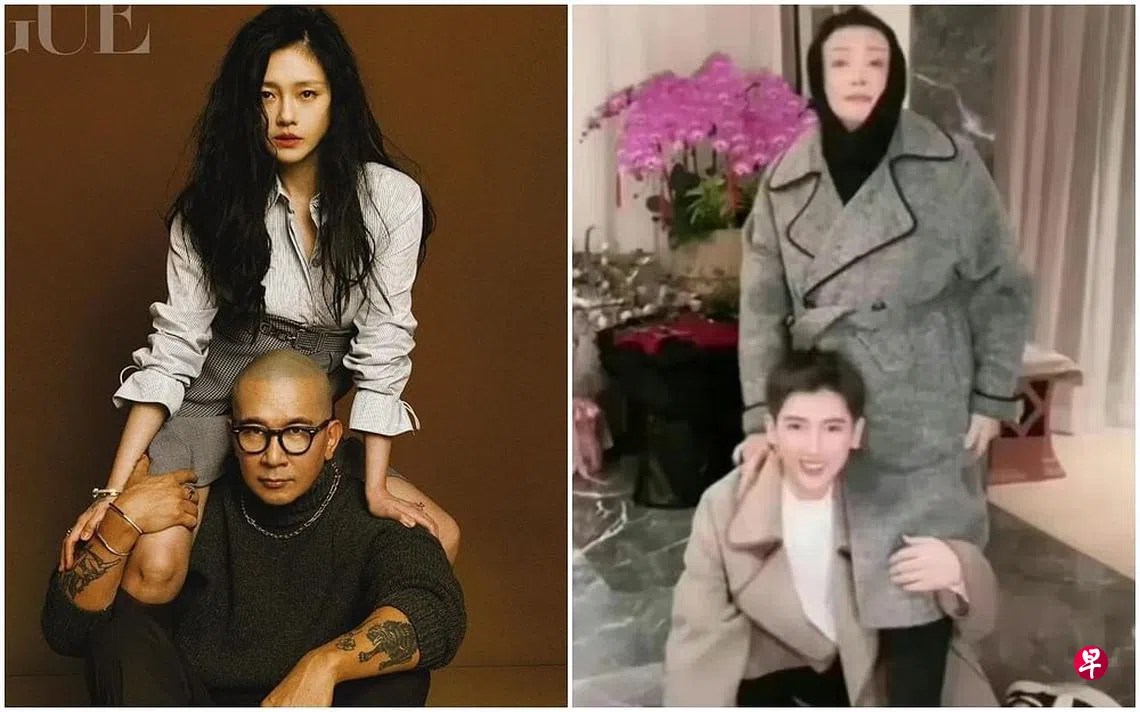 大S在夫妻写真中曾用爆米花当道具,张兰改拿卤蛋;还学具俊晔抹刮胡泡在脸上,连两人拍照的姿势都复制。