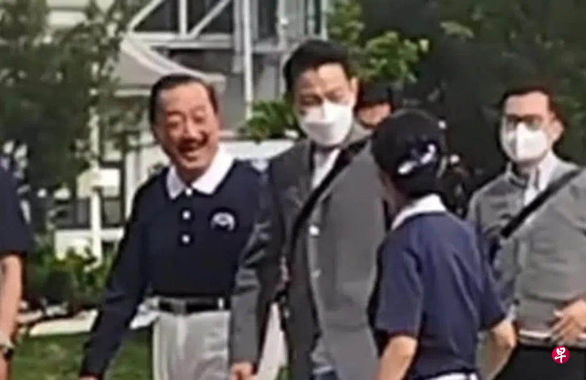 刘德华身穿灰色外套、白色T恤及牛仔裤,并戴着白色口罩,在陈志远及众人陪同下,一路有说有笑,十分亲切。
