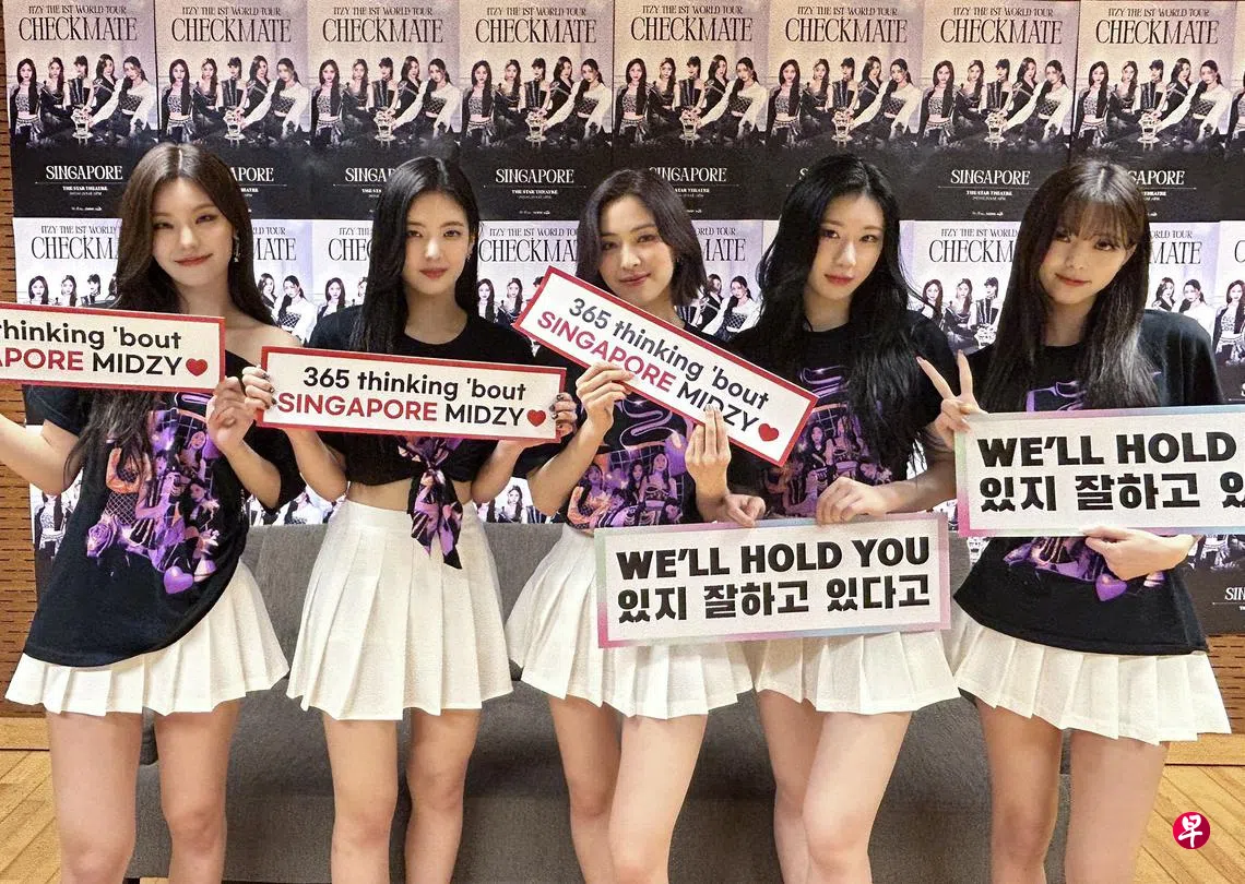 时隔两年再登狮城舞台!2019年出道的韩国女子团体ITZY星期六(28日)在新加坡星宇表演艺术中心(The Star Performing Arts Centre)举行了“CHECKMATE”世界巡回演唱会,吸引了大约5000名MIDZY(官方粉丝团名称)的到来。