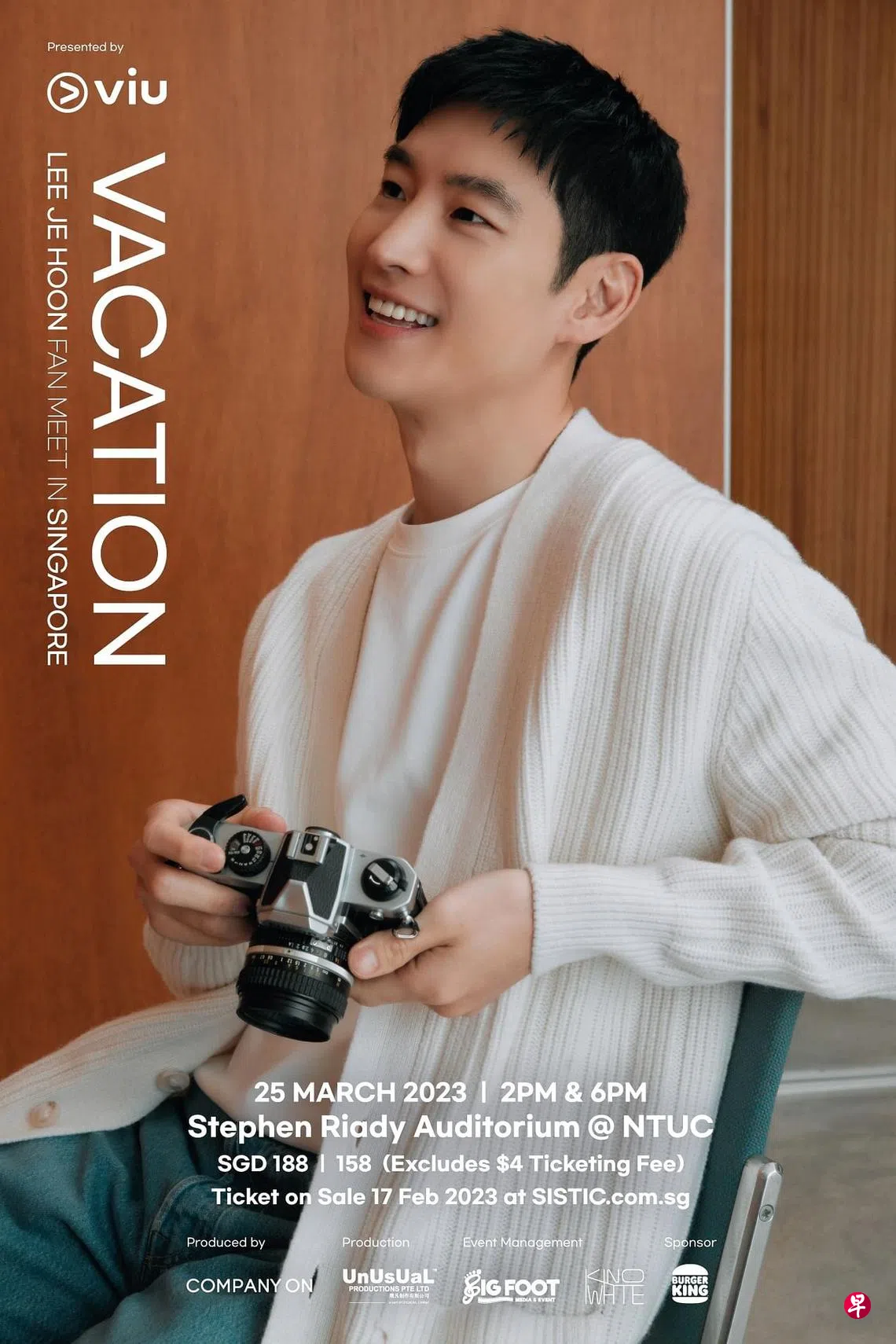 拍摄时有哪些难忘的经历?如何锻炼出爆筋身材?相信李帝勋会在粉丝会上分享。粉丝会由Viu主办,有下午2时和6时两场,地点是职总大厦的Stephen Riady礼堂(1 Marina Blvd #07-01 S018989)。每一场票价分188元和158元(不包括行政费),星期五(2月17日)中午12时在sistic.com.sg开始发售。