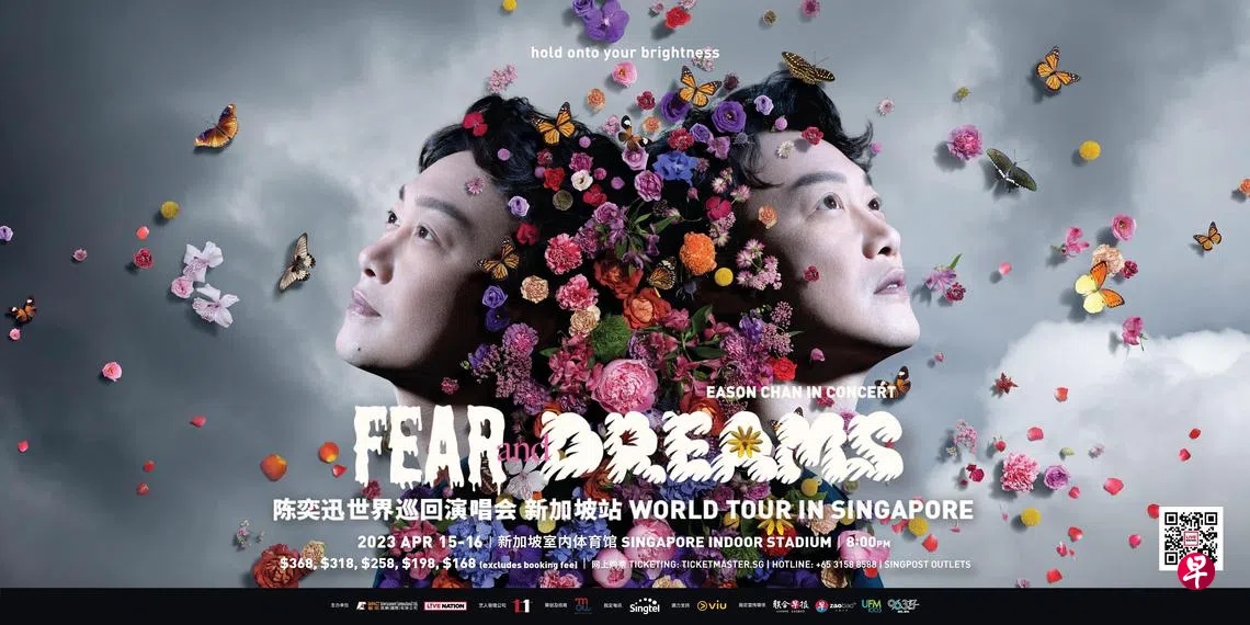 距离上一场大型演唱会“EASON’s Life”已有8年之久,期间他也曾来新举行新歌音乐会,场场演出门票皆完售。这回他在香港演唱会尾场公布全新巡演即将在新加坡、马来西亚以及台湾举行时,立即引起歌迷热烈讨论,也势必引起一股抢票风潮。 陈奕迅“FEAR AND DREAMS”巡回演唱会于2022年12月开启,演唱会消息一公布,反应十分热烈,18场演唱会门票开卖首日随即火速售罄,一票难求。最终在歌迷的热烈要求下,主办单位3次宣布加场,一共27场,打破了陈奕迅于香港红磡举办演唱会的个人记录。值得一提的是,去年12月24日平安夜举行的第12场演唱会,也是他出道以来在红磡体育馆的第100场演唱会,可说是意义非凡。 陈奕迅的新加坡站演唱会将在4月15日(星期六)及16日(星期日)晚上8时,于新加坡室内体育馆举行。门票分$368、$318、 $258、$198、$168。新电信移动用户可在3月1日(星期三)预先抢购门票:http://www.singtel.com/eason。Live Nation会员(免费注册)可在3月2日(星期四)早上10时至晚上11时59分,在https://www.livenation.sg/优先购票。3月3日(星期五)早上10时www.ticketmaster.sg将正式公开发售。观众也可通过新加坡邮政(SingPost)或拨打订票热线31588588购票。