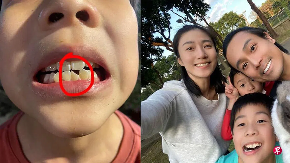 本地艺人庞蕾馨日前在IG分享长子陈煊劼恒齿断掉的照片,《新明日报》记者联络庞蕾馨了解这件事时,她表示:“当天儿子和妹妹(女儿陈语霏)在公园玩的时候,儿子急着转身跟妹妹说话,结果因为太靠近木头柱子,就撞到了。”