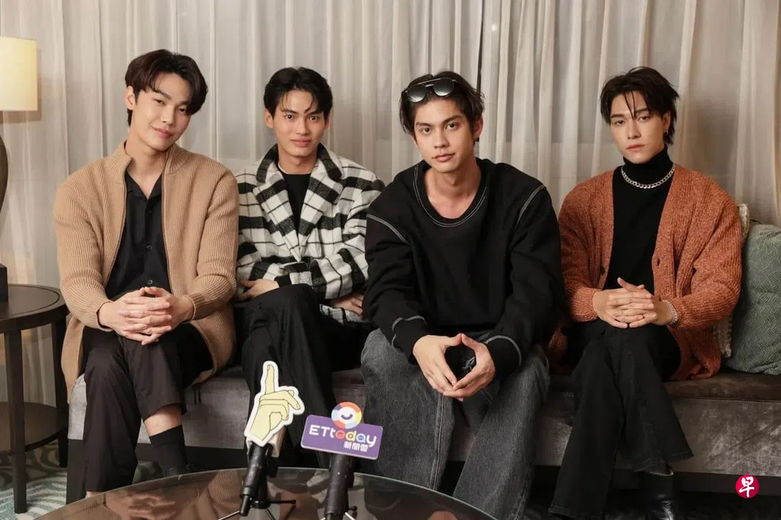 “泰国F4”日前为了见面会通过Zoom视讯接受《联合早报》的访问,全程以英语作答。四帅当中,25岁的Bright今年出道10年,演艺资历最深,在拍摄泰版《流星》前一年,他与24岁的Win凭《因为我们天生一对》爆红,两人戏里戏外培养好默契;至于22岁的Dew、25岁的Nani则在泰版《流星》中初尝拍戏滋味。