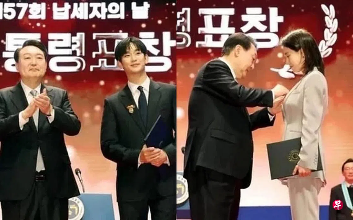 韩媒报道,3月3日韩国举办第57届纳税人节表扬大会,表扬诚实交税及对税务政策做出贡献的人士,其中,金秀贤与宋智孝被选为模范代表,上台接受总统尹锡悦表扬,并获委任为“国税厅公关大使”。