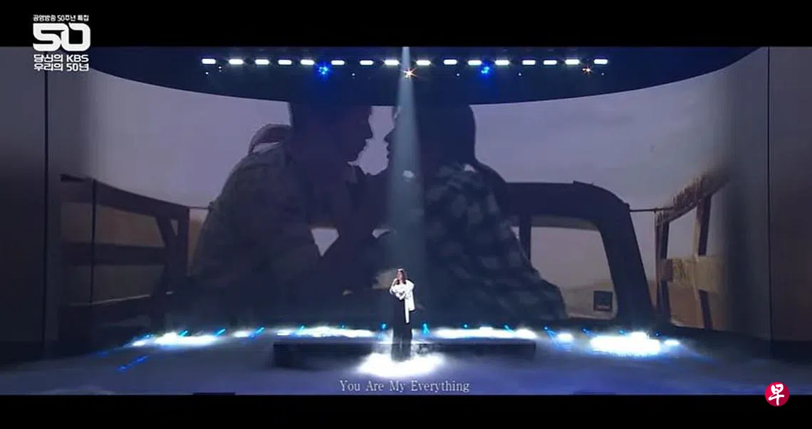 KBS日前举办创社50周年纪念演唱会“你,我们的50周年”,由于《太阳的后裔》为该电视台经典作品之一,当年最高收视率达到38.8%,因此特别请来当年演唱OST《You Are My Everything》的歌手Gummy登台演出。