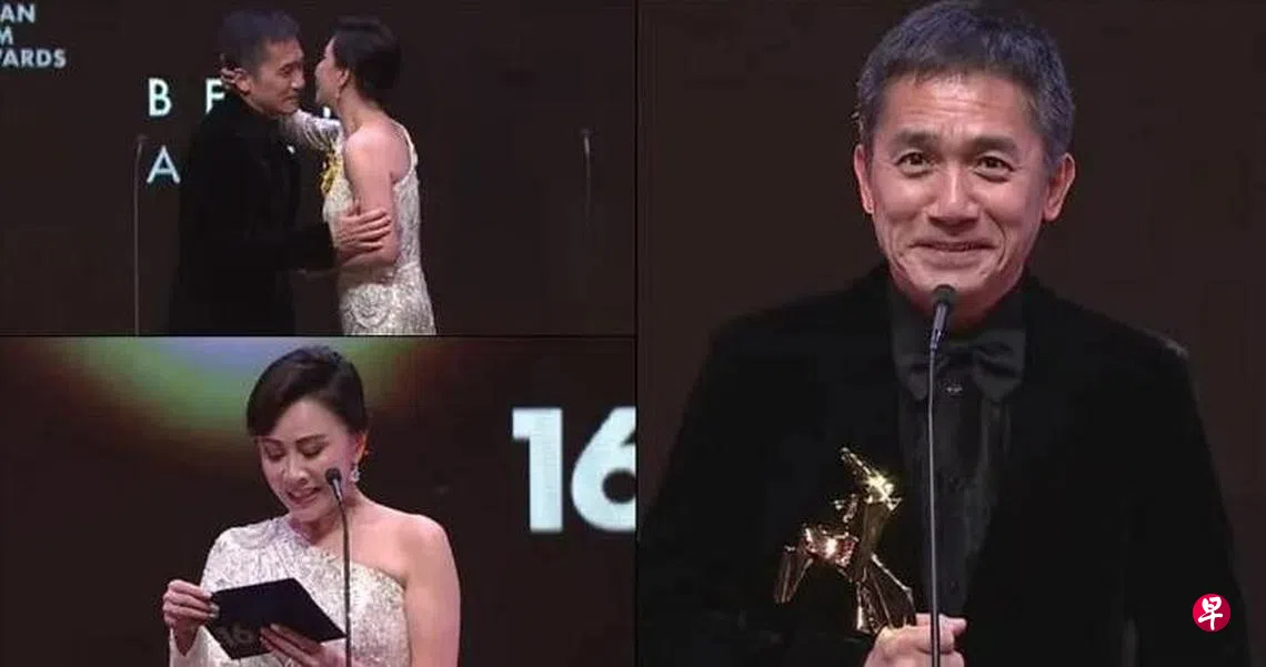 “最佳男主角”的颁奖嘉宾是刘嘉玲,她打开信封得知丈夫得奖后,大叫“Oh My God”,又说得奖人的名字很难读,随后冷静地说︰“Tony梁朝伟”。