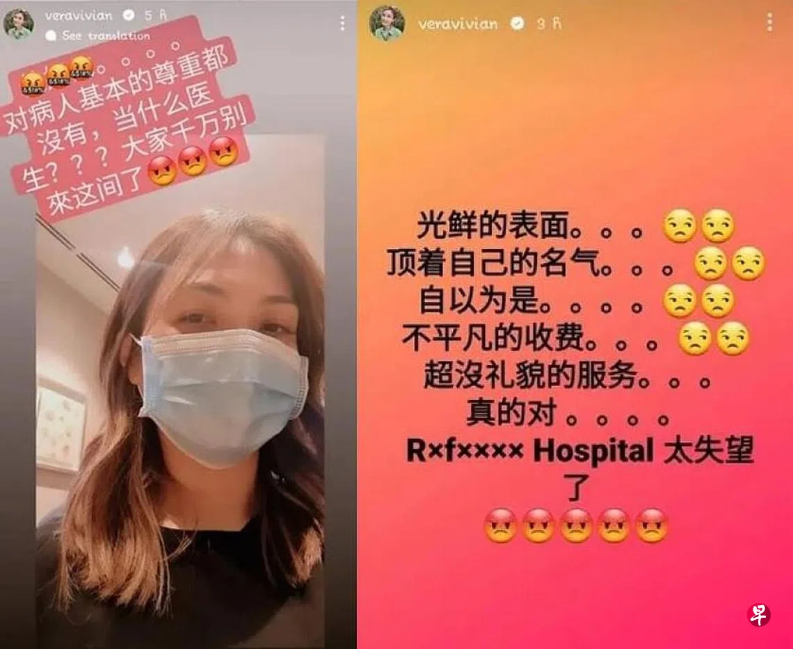 艺人赖怡伶日前到本地医院问诊,但她似乎相当不满意医院的服务素质,在星期五(3月17日)连发两条限时动态批评院方,表达不满。