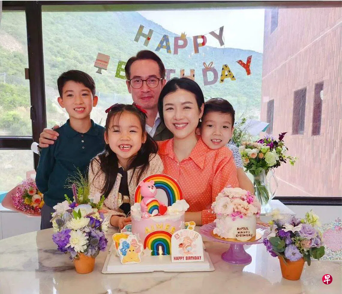 陈茵媺2日上载多张照片及短片到社交网,南区豪宅云石餐桌上,放着两个精致蛋糕,上面放着她最爱的熊公仔,满室鲜花鲜艳又梦幻。三名子女送上礼物令她相当开心,一家五口全家福笑容灿烂,充满幸福感觉。