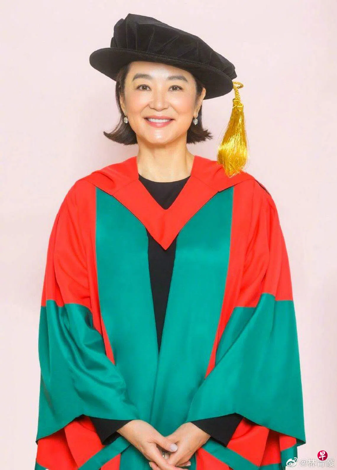 林青霞贴出自己穿上博士袍的照片,发文:“我的母亲年轻的时候,因为战争和种种原因,没能完成学业,这是她一生最大的遗憾,所以对博士特别有情意结,现在自己的女儿竟然有一天成了博士,相信她在天国必定感到莫大的欣慰。”