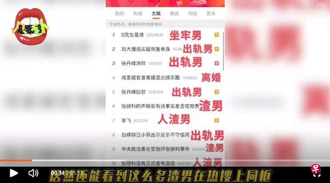 近日,有中国网民指热搜榜出现“渣男霸榜现象”,引起热议。