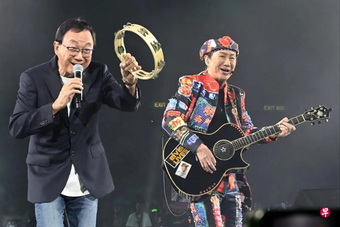(香港讯)74岁香港歌神许冠杰4月7日在红馆开唱,这次演唱会是为纪念广东歌50周年,两个儿子许怀欣、许怀谷和干儿子Justin一同上台演出,炒热气氛,并邀请新晋歌手林家谦担任嘉宾。
