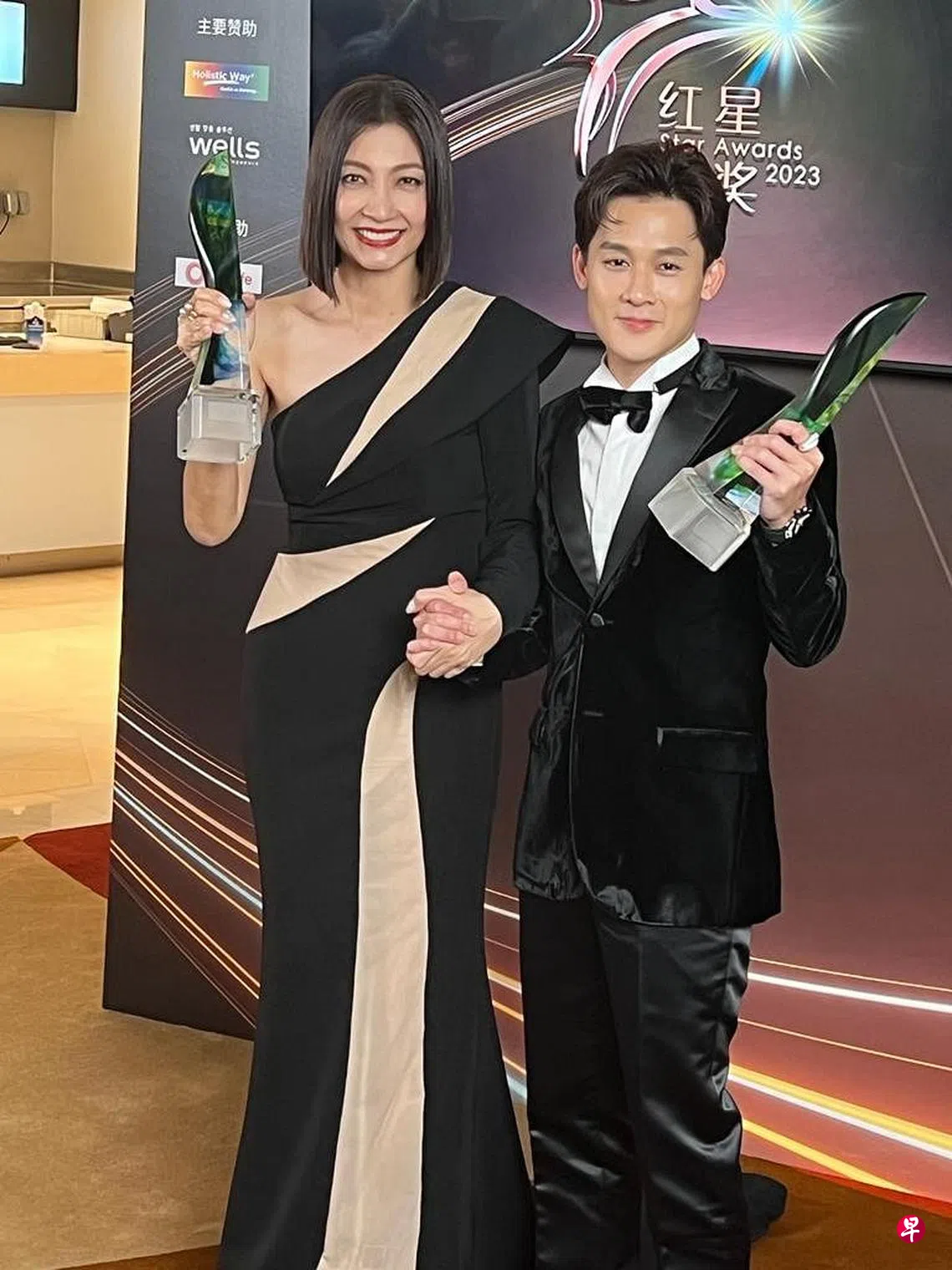 “红星大奖2023”颁奖典礼星期天(4月9日)在滨海湾金沙举行,今年的主题为“新跨越·星狂欢”。除了公布12个奖项的成绩,本地艺人也以歌舞秀的形式唱跳演出。乐坛天后郑秀文和金曲歌王萧敬腾前来担任表演及颁奖嘉宾,台湾名嘴陶晶莹则与李腾首次携手主持。