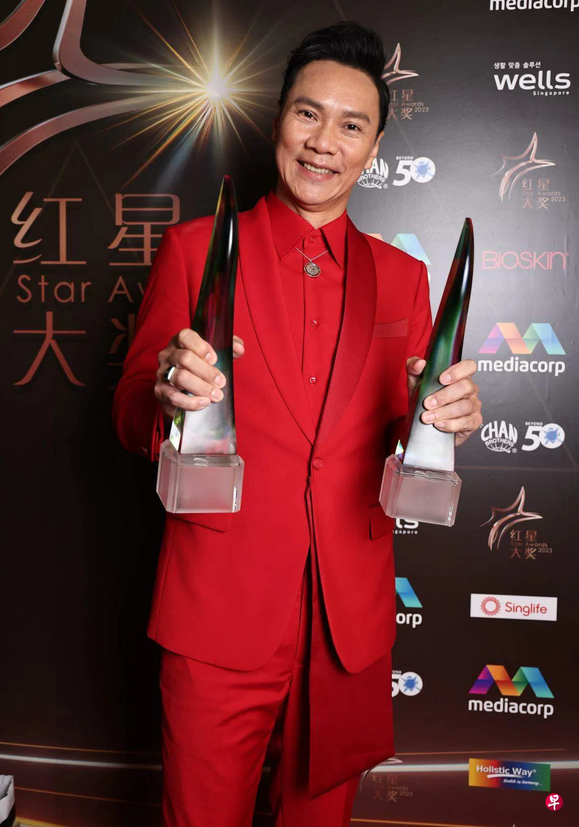 黄炯耀2022年以一身红色西装出席“红星大奖”颁奖典礼,当时首次入围10大最受欢迎男艺人的他,成功得奖,那是他入行27年的第一个奖。2023年,黄炯耀再次以一身红色打扮出席“红星大奖2023”,并再下一城,不仅再次成功挤进10大,还以《黑天使》夺下最佳男配角,这是他的第一个演技奖。