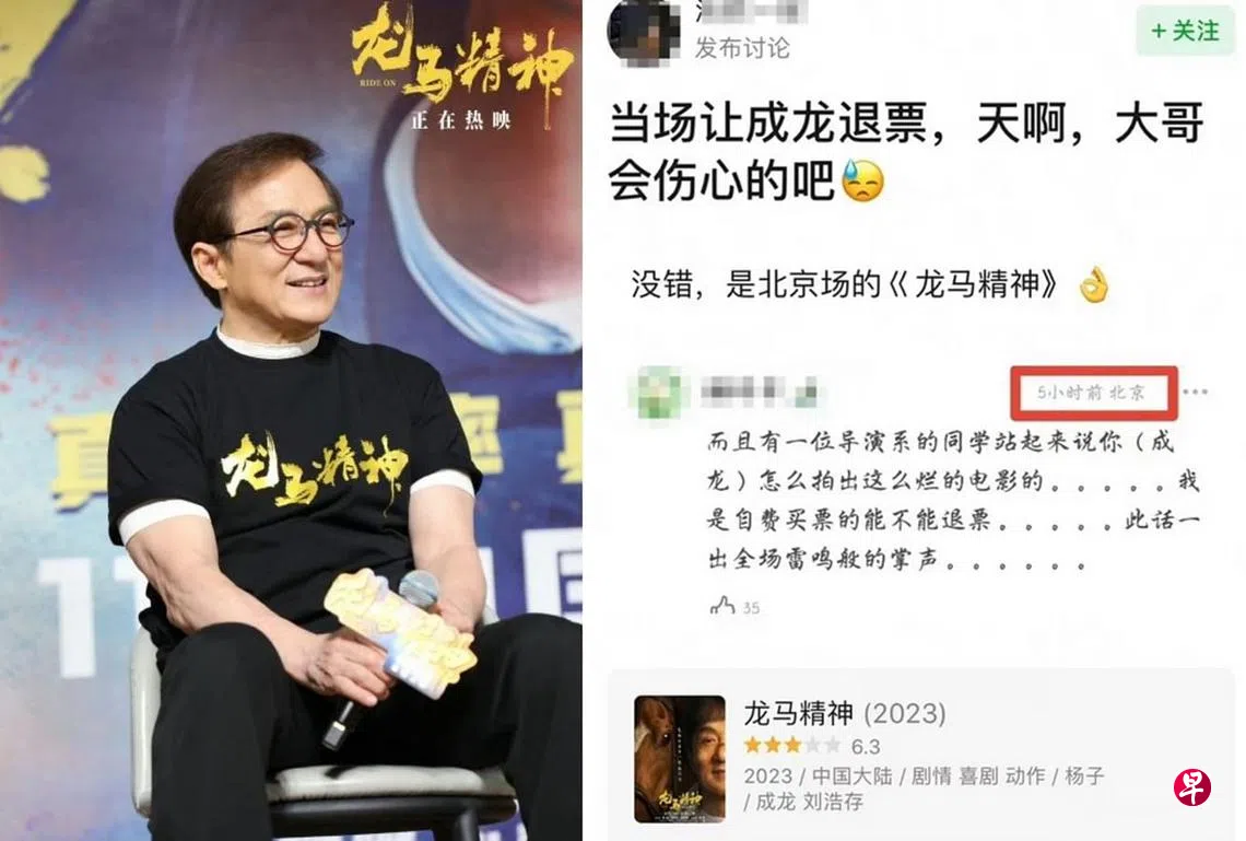 (综合讯)成龙最近马不停蹄地宣传新作《龙马精神》。有微博网民爆料说,成龙近日出席《龙》片在中国传媒大学的路演时,遭看过电影且自费买票的导演系学生当面质问:“你怎么拍出这么烂的电影?我是自费买票的,能不能退票?”