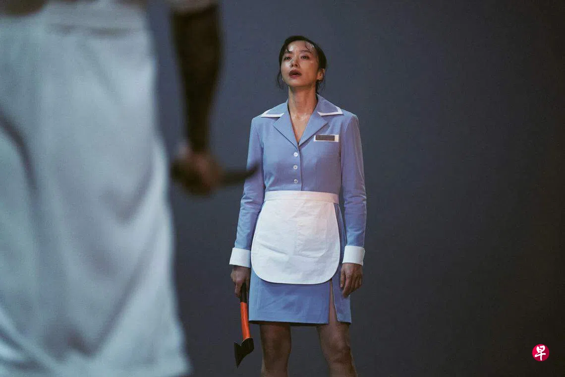 继《鱿鱼游戏》受落后,韩国电影更爱打打杀杀了,全度妍走进大厦,坐电梯上楼找车民奎一较高低,杀气不输《情兽》(Old Boy)中报复心强的男主角崔岷植。《格》从头到尾没有揭露吉福顺女儿的父亲是谁,面对如此强悍的吉福顺,这个父亲若出现,恐怕也没什么发挥机会,因为这是一部让女性高光的电影,吉福顺后来还与女儿共同完成隐秘身份的探险。(韩语对白,附中文字幕)