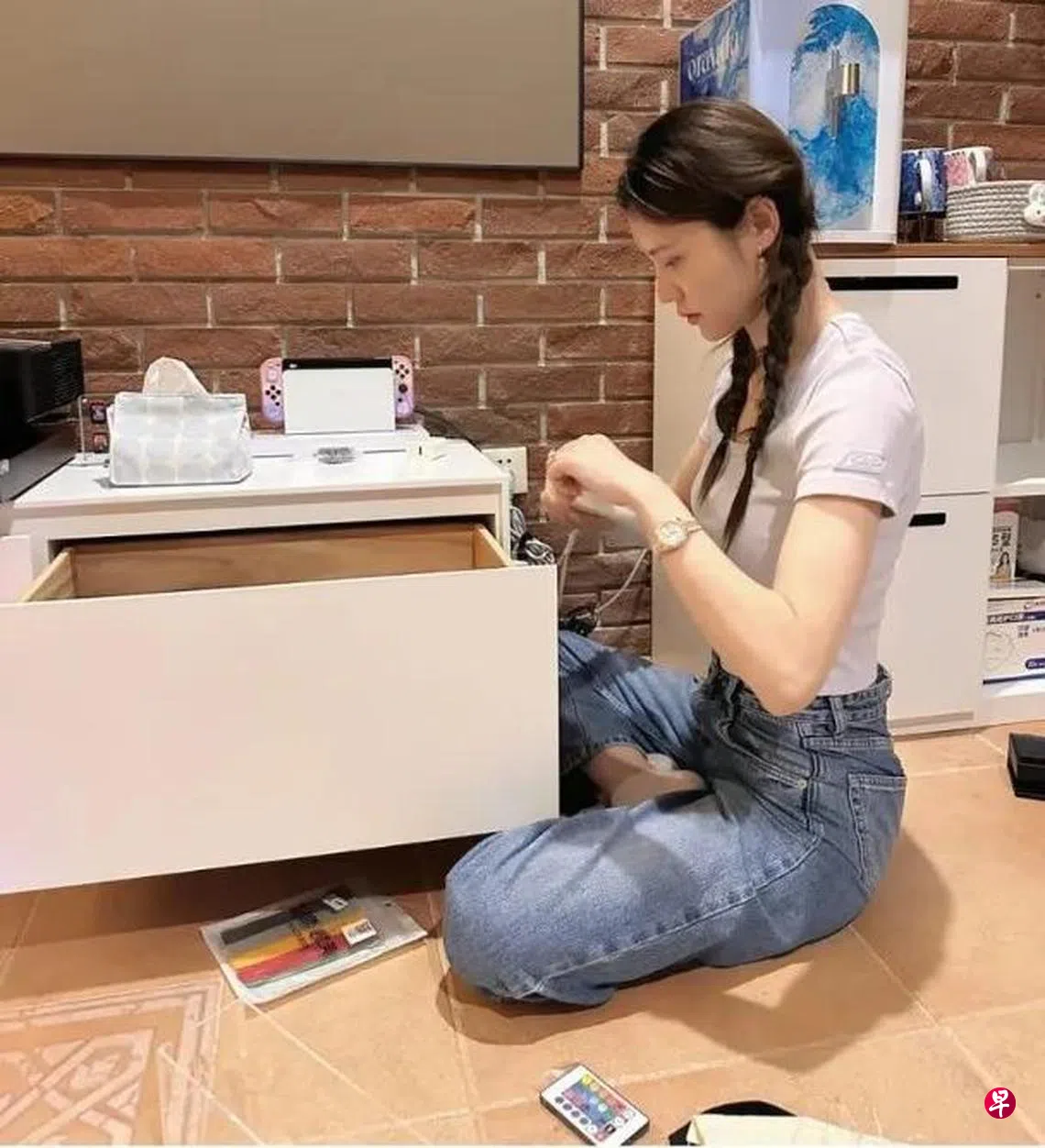 张馨月近日于社交网晒出做家务近照。 (互联网)
