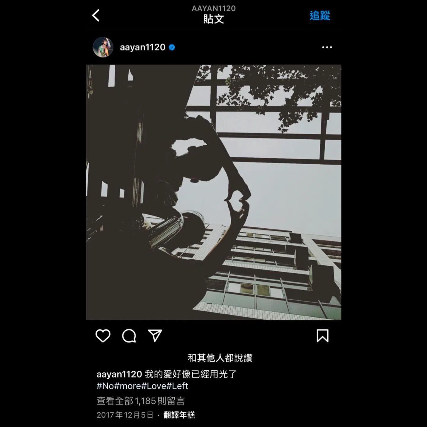 耀乐同时配图,分享一张有炎亚纶Instagram蓝勾勾的截图,照片中疑似炎亚纶的男子和另一个人比爱心。