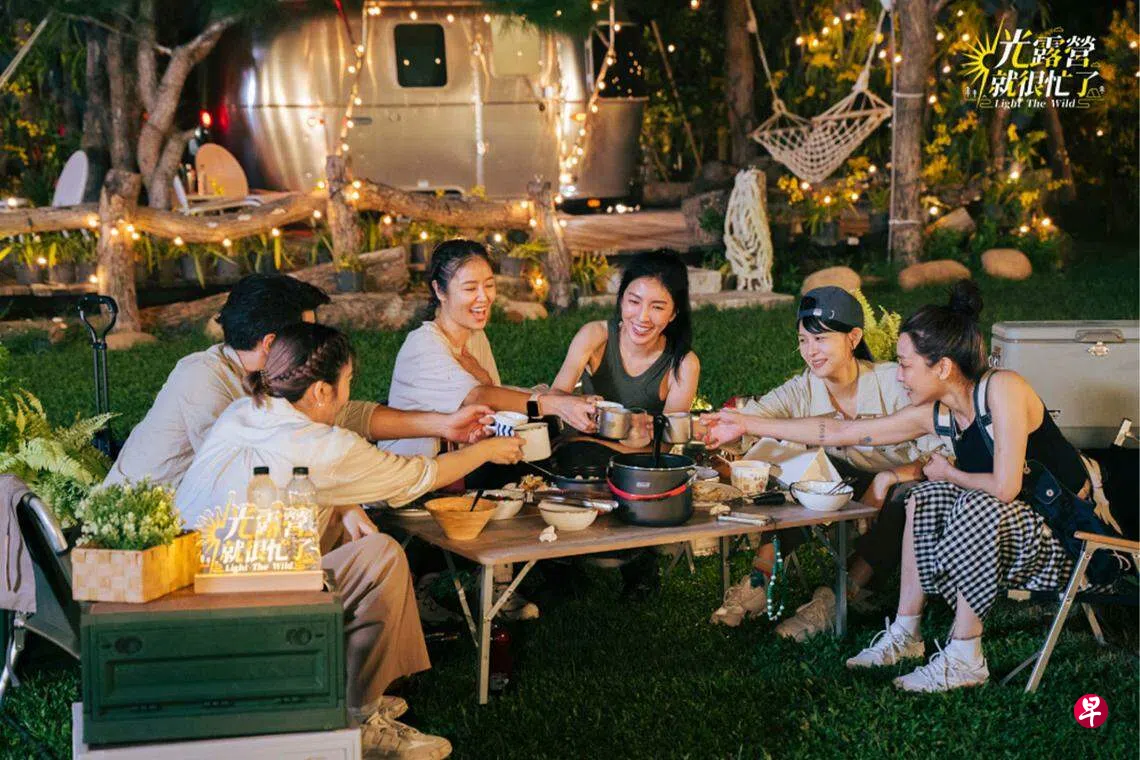 林心如率领台剧《华灯初上》“光”酒店的小姐们一起去体验野外生活,10集中到五个不同的营地,有时睡在豪华的露营车,有时到山上以地为床以天为被,有时是在树林里搭帐篷,融入在大自然中。