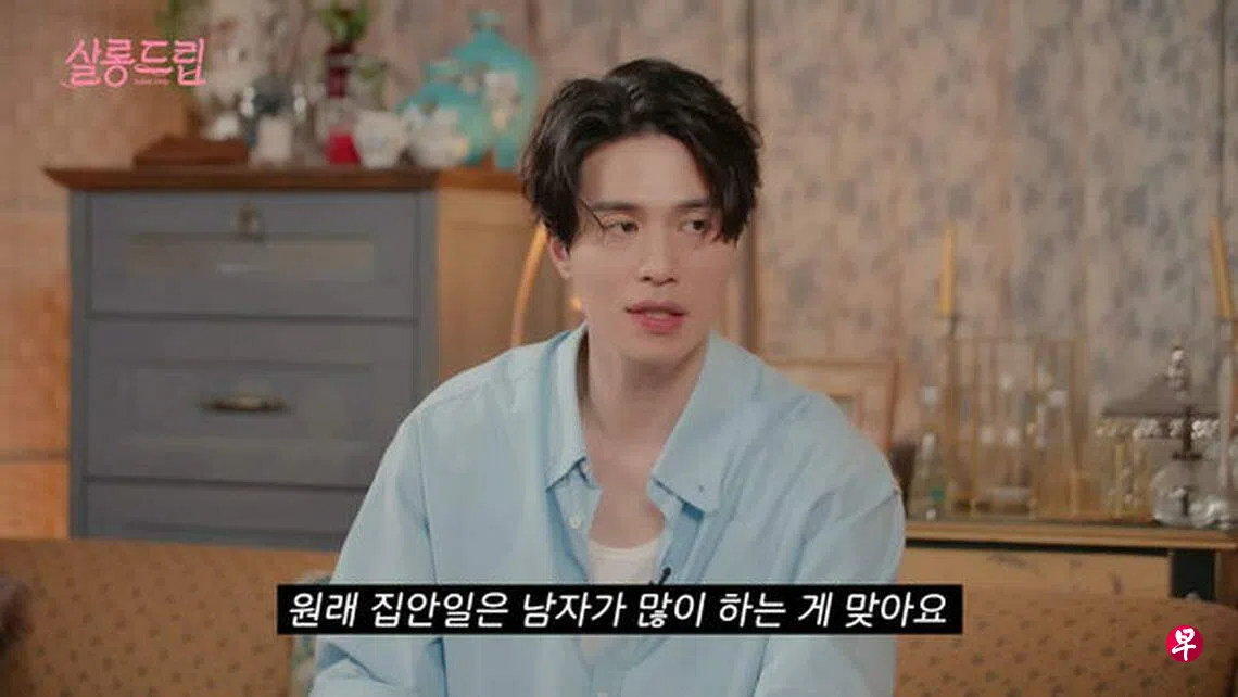 由于李栋旭有自己一套做家事的流程,他还说:“就算结婚,家事也都我来做。”他接着分享自己的想法:“我个人认为家事应该要男生做才对,因为要出力的家事其实很多,比较有力气的人多做很合理。”这番话马上引起韩国女网民讨论,有粉丝甚至心动说:“有这样的脸,还说出那样的话,只想把他绑架回家!”