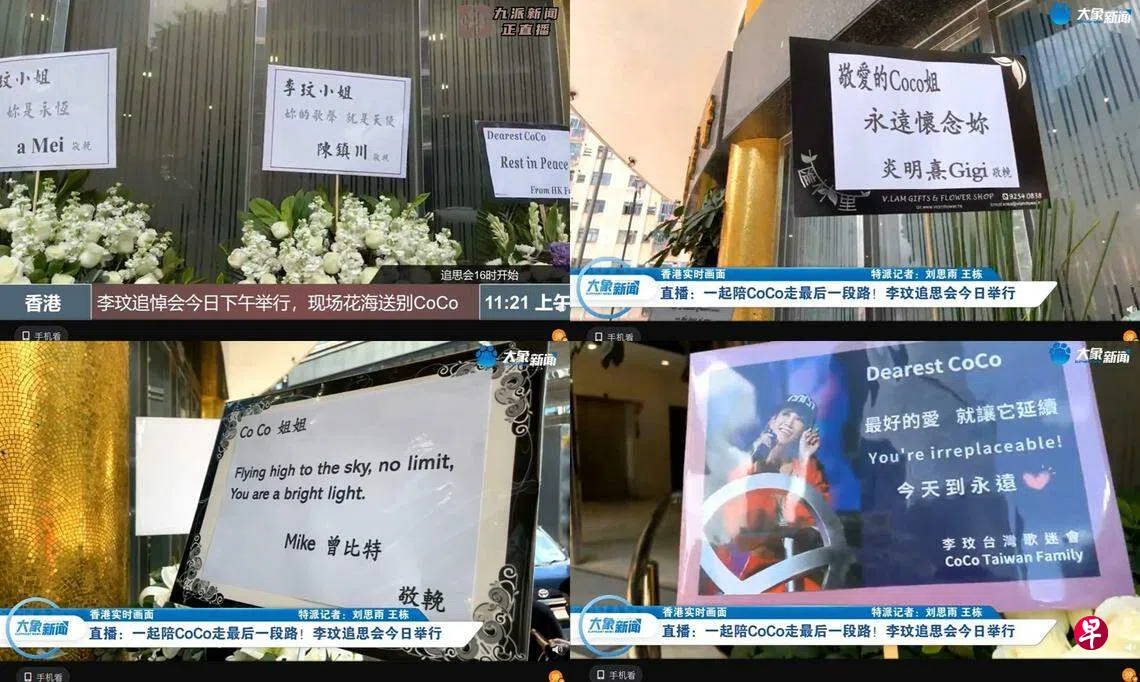 (综合讯)音乐天后李玟(CoCo)7月5日离世,31日下午4时在香港殡仪馆举行告别式,不少粉丝都飞往香港想送偶像最后一程,现场已有许多圈内好友献上花篮悼念,其中更见到张惠妹、陈镇川等人,留下心碎悼语向李玟道别,现场气氛哀戚令人鼻酸。