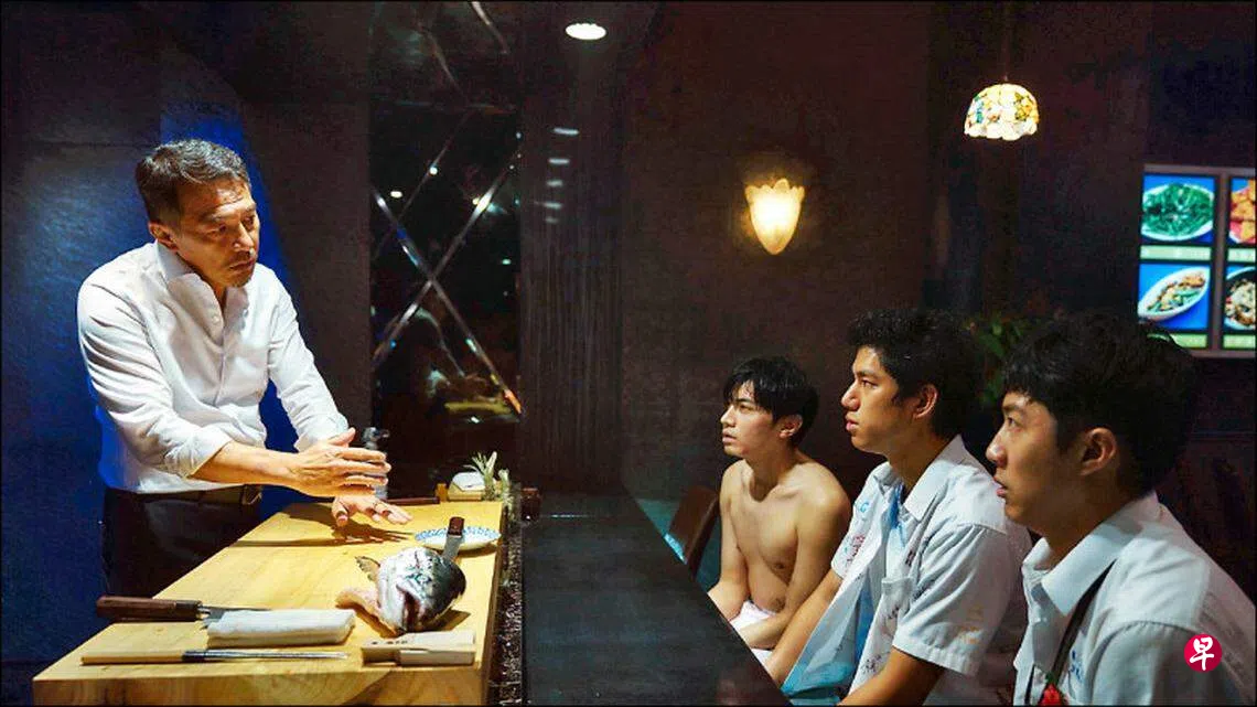 当然,前面发生在校园里的所谓“回忆镜头”,还是点到学校教育手段的缺失和局限――高压对顽劣子弟的掣肘没有可持续性,一出校园就原形毕露?只是三名主角刚毕业,没来得及经历社会打滚(不论有没有先上大学)的磕磕碰碰而逐渐理解和学会因应明规则之下的暗规则(或是一辈子学不会),一夜间就盲打误撞地完成了告别青春的残酷成人礼。或许他们这才发现,在学校里做“坏”事而被罚留堂、罚劳改,不过小菜一碟;夜深时某个配角对他们的耳提面命,如醍醐灌顶:“没老大又没钱,就不是做坏事,而是做错事。”因为他们正面对“餐馆大菜”――是自己变成(砧)板上肉、盘中餐。