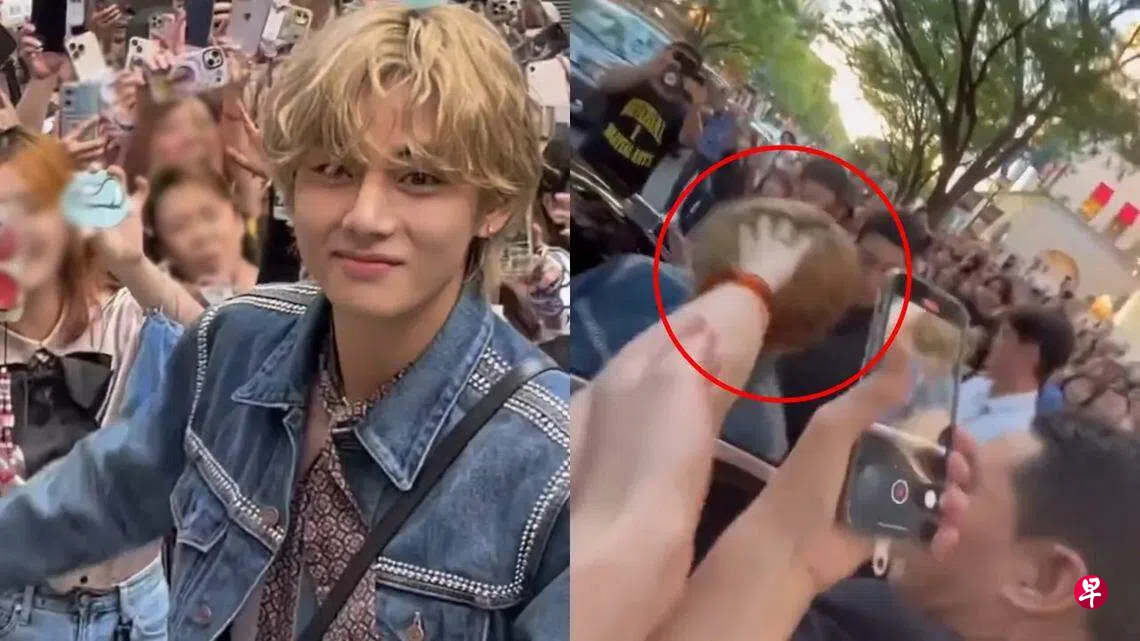 (综合讯)韩国天团“防弹少年团”(BTS)成员V(金泰亨)是Celine世界品牌大使,他星期二(22日)到日本东京出席品牌活动,现身品牌在表参道的店面,粉丝把现场挤得水泄不通,还不断尖叫。有网民捕捉到一名失控粉丝伸手抓住V的头发,画面曝光后,日本粉丝痛批该网民“好丢脸”,认为真正的粉丝应该要懂得尊重艺人。