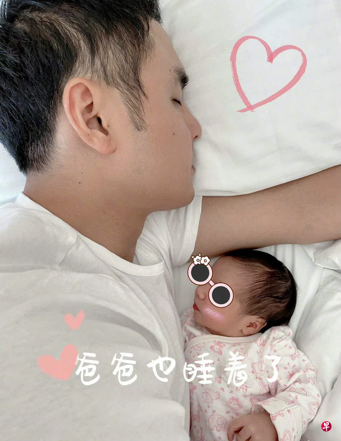 照片中,明道不仅勾着女儿小手,以宝宝“口吻”写道:“抓紧你啰!以后就和你们混啦~”另外一张照片中,他则是躺在爱女旁边睡着,画面温馨有爱,引来大批粉丝的祝福。
