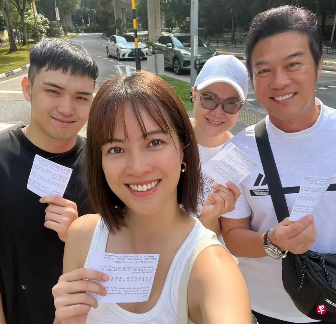 洪慧芳也在IG分享,和老公郑各评以及儿女郑颖、郑凯介在早上完成了投票,并分享了一家四口的合照。