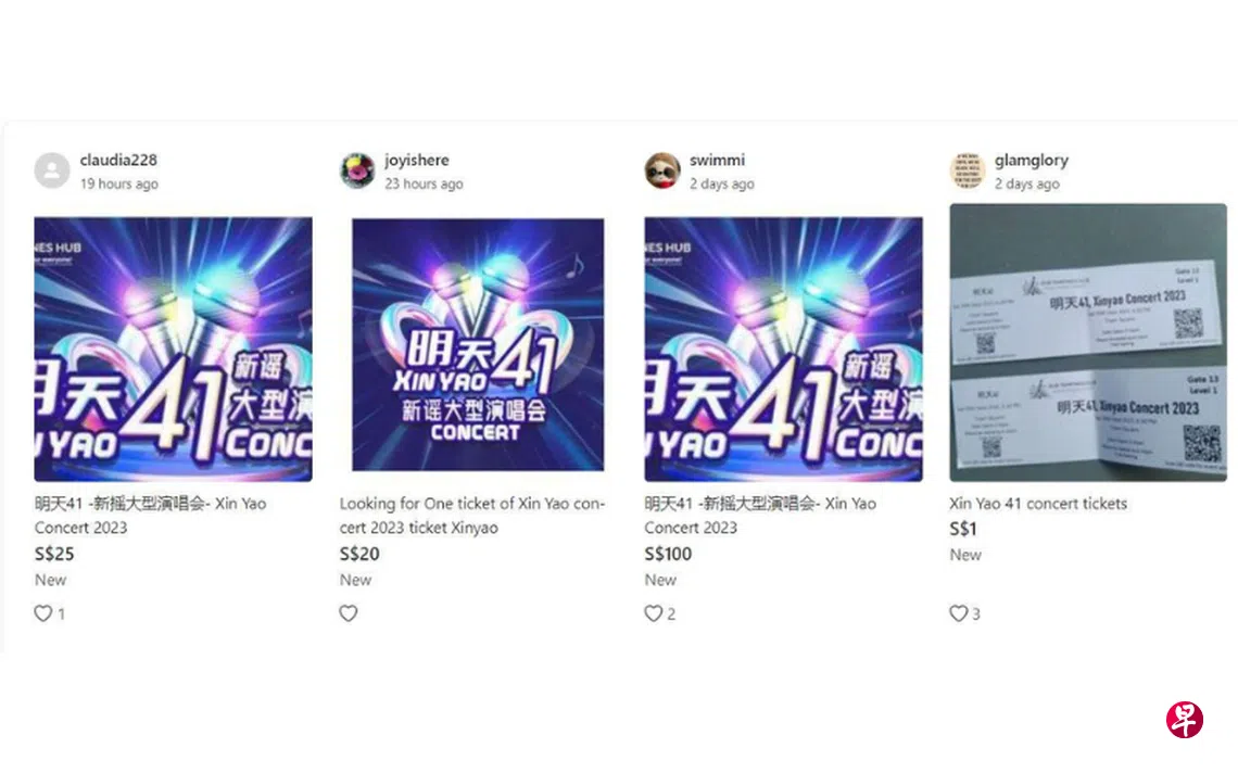 一票难求下,有读者向《新明日报》通报有人在网络炒卖新谣免费门票,记者星期二(19日)早上网查阅,发现Carousell网购平台出现几个售卖《明天41》新谣大型演唱会门票的广告。广告中,有人以双人套票出售,叫价每张100元,但也有人仅出价每张1元。对于此事,《新明日报》联络主办方,负责人均表示不愿对此发表任何意见。