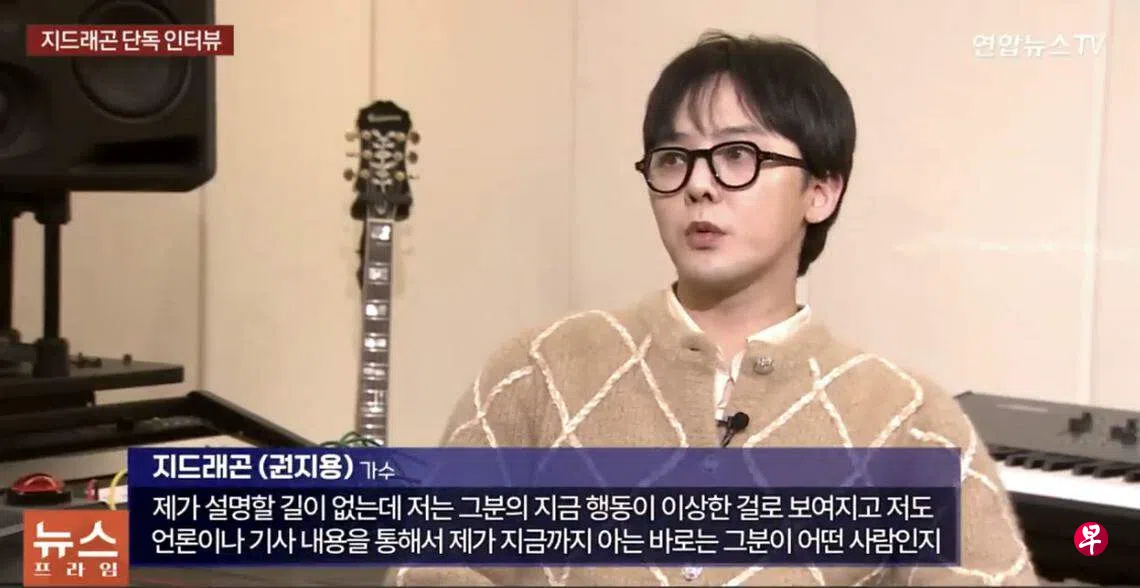 GD星期一(11月13日)接受“韩联社”访问,否认吸毒指控,直言“如果从体内验出毒品反应那就奇怪了”,强调“再说一遍,我从未吸过毒,也没有和任何人交易毒品”,会自愿到派出所的原因是想尽快证明清白。
