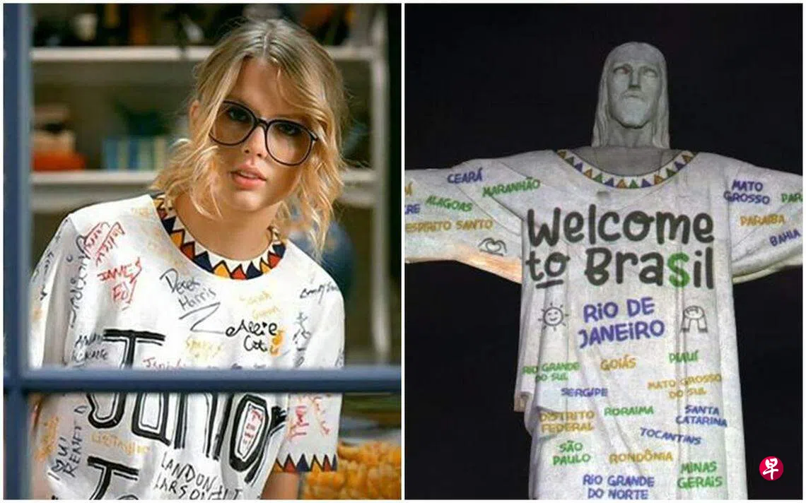 (综合讯)泰勒丝(Taylor Swift)将于11月17至19日一连三天在巴西里约举行“The Eras Tour(时代巡回演唱会)”,巴西为了欢迎泰勒丝大驾光临,直接为最具代表性的耶稣基督像穿上泰勒丝于2009年推出的“You Belong With Me”MV中的经典T恤,更写下“欢迎来巴西”字样,十分热情。